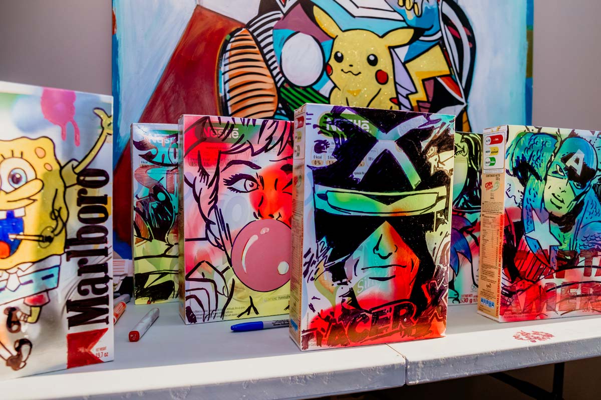 Inspiration is a lightning that strikes in unexpected places, like right in the middle of a supermarket's cereal aisle. Artist Leonardo Hidalgo just took his favorite cereal box and dare to sketch over it, right there. An impulse as original, bold and unconventional like all his art.
