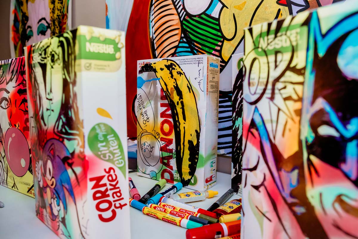 Inspiration is a lightning that strikes in unexpected places, like right in the middle of a supermarket's cereal aisle. Artist Leonardo Hidalgo just took his favorite cereal box and dare to sketch over it, right there. An impulse as original, bold and unconventional like all his art.